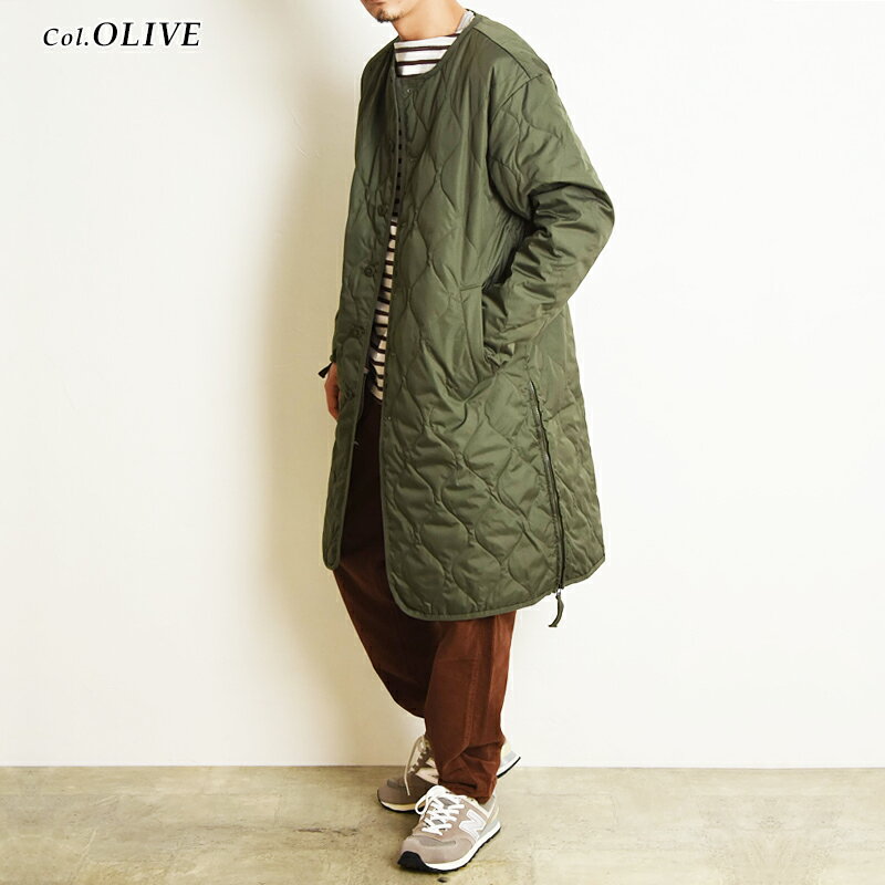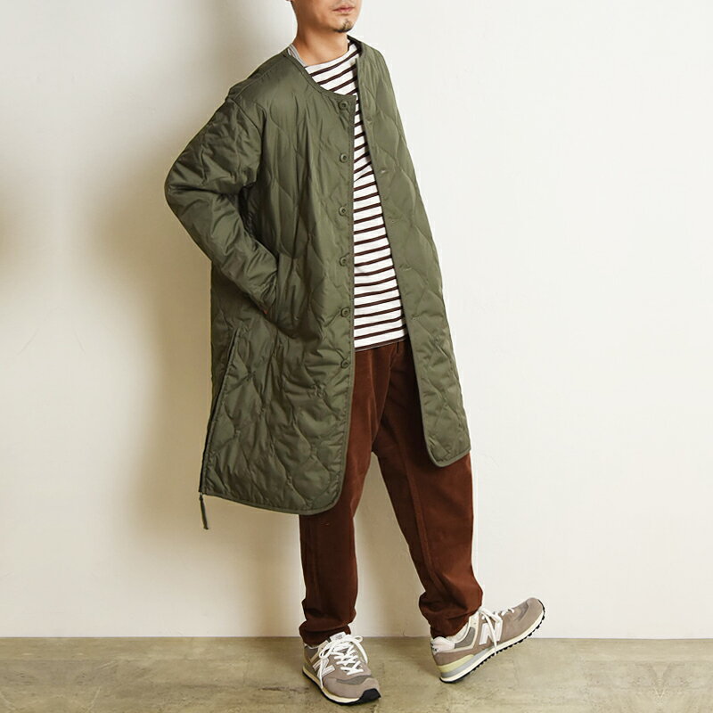 TAION タイオン ミリタリーダウンコート 104BML-LONG モデルスペック:177cm、66kg 着用カラー:OLIVE 着用サイズ:M 重ね着しやすく、ロングシーズンお使いいただけるアイテムです。
