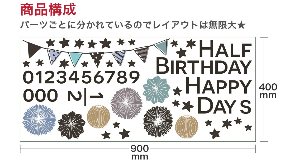 ハーフバースデー☆シール式ウォールステッカー 1/2 誕生日 ウォールステッカー 飾り 400×900mm シール式 ケーキ ガーランド バースデーパーティ飾り 風船 バルーン 壁紙 お祝い パーティ DIY Anniversary ブルー おしゃれ かわいい 017140