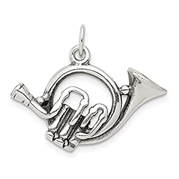 【中古】【輸入品・未使用】スターリングシルバーアンティークフレンチホルンのチャームスターリングシルバーチェーンネックレス、16インチ- 20インチ